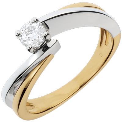 Solitaire Ring Precious Nest- Filament - yellow gold and white gold - 0.26 carat - 18 carats