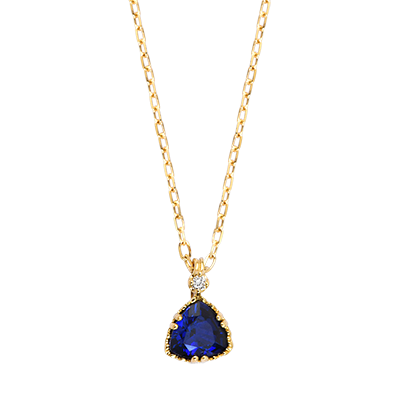 A 0.5 carat synthetic sapphire enhanced by a sparkling diamond on the bail.An elegant necklace with unique charm, combining radiance and golden finesse.