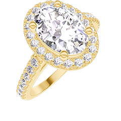 Ring Yellow gold 9 carats - Laboratory Diamond Oval 1 Carats - Halo Laboratory Diamond - Setting Laboratory Diamond