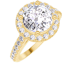 Ring Yellow gold 9 carats - Lab-grown diamond Round 1 Carats - Halo Lab-grown diamond - Setting Lab-grown diamond