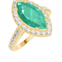 « L'ATELIER » NO. 1276137Ring Yellow gold 9 carats - Emerald Marquise 1 Carats - Halo Diamond white - Setting Diamond white