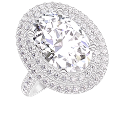 Ring White gold 9 carats - Lab-grown diamond Oval 2 Carats - Halo Lab-grown diamond - Setting Lab-grown diamond