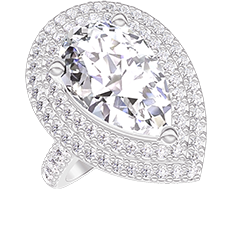 Ring White gold 9 carats - Lab-grown diamond Pear 2 Carats - Halo Lab-grown diamond - Setting Lab-grown diamond