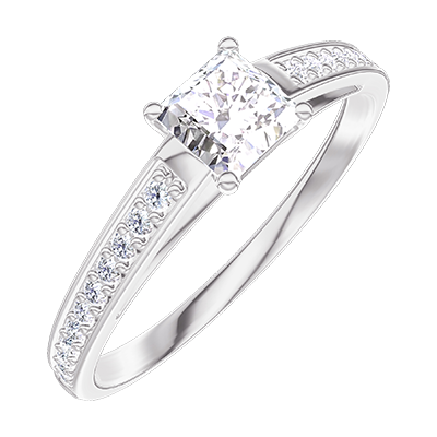 « L'ATELIER » NO. 160107Ring White gold 18 carats - Diamond white Princess 0.3 Carats - Setting Diamond white