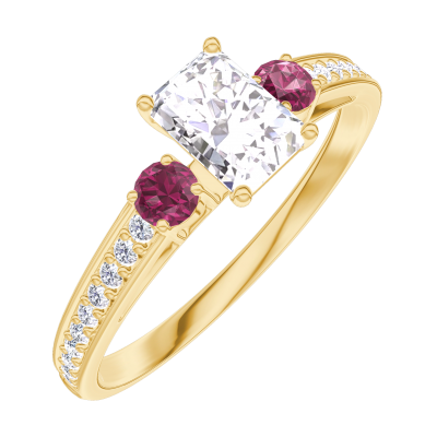 « L'ATELIER » NO. 160245Ring Yellow gold 18 carats - Diamond white Baguette 0.3 Carats - Ring settings Ruby - Setting Diamond white