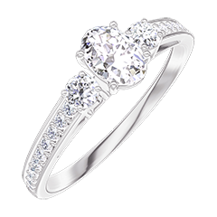 Ring White gold 9 carats - Diamond white Oval 0.3 Carats - Ring settings Diamond white - Setting Diamond white