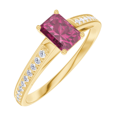 Ring Yellow gold 18 carats - Ruby Baguette 0.3 Carats - Setting Diamond white