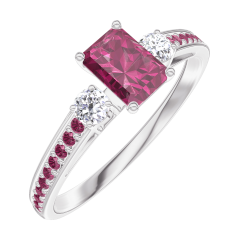 Ring White gold 18 carats - Ruby Baguette 0.3 Carats - Ring settings Diamond white - Setting Ruby