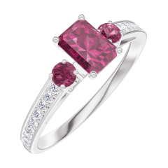 Ring White gold 9 carats - Ruby Baguette 0.3 Carats - Ring settings Ruby - Setting Diamond white