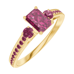 Ring Yellow gold 9 carats - Ruby Baguette 0.3 Carats - Ring settings Ruby - Setting Ruby