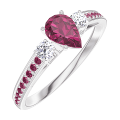 « L'ATELIER » NO. 161032Ring White gold 9 carats - Ruby Pear 0.3 Carats - Ring settings Diamond white - Setting Ruby