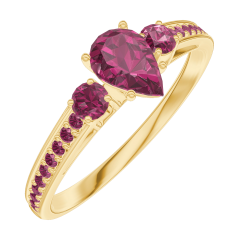 Ring Yellow gold 9 carats - Ruby Pear 0.3 Carats - Ring settings Ruby - Setting Ruby
