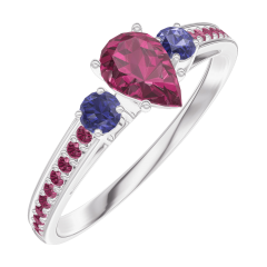 « L'ATELIER » NO. 161072Ring White gold 9 carats - Ruby Pear 0.3 Carats - Ring settings Blue Sapphire - Setting Ruby