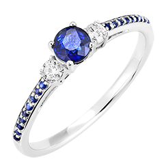 Ring White gold 18 carats - Blue Sapphire round 0.3 Carats - Ring settings Diamond white - Setting Blue Sapphire