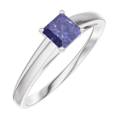 Ring White gold 18 carats - Blue Sapphire Princess 0.3 Carats