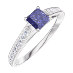 Ring White gold 9 carats - Blue Sapphire Princess 0.3 Carats - Setting Diamond white