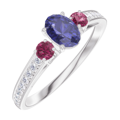 Ring White gold 9 carats - Blue Sapphire Oval 0.3 Carats - Ring settings Ruby - Setting Diamond white