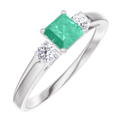 Ring White gold 18 carats - Emerald Princess 0.3 Carats - Ring settings Diamond white