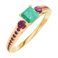 Ring Yellow gold 18 carats - Emerald Princess 0.3 Carats - Ring settings Ruby - Setting Ruby