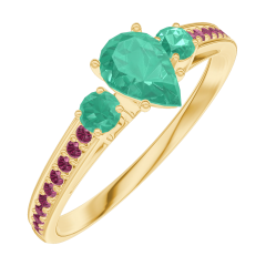 Ring Yellow gold 18 carats - Emerald Pear 0.3 Carats - Ring settings Emerald - Setting Ruby