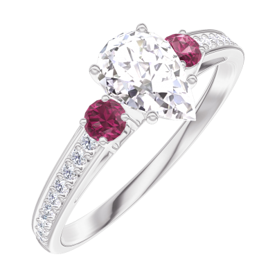 « L'ATELIER » NO. 162847Ring White gold 18 carats - Diamond white Pear 0.5 Carats - Ring settings Ruby - Setting Diamond white