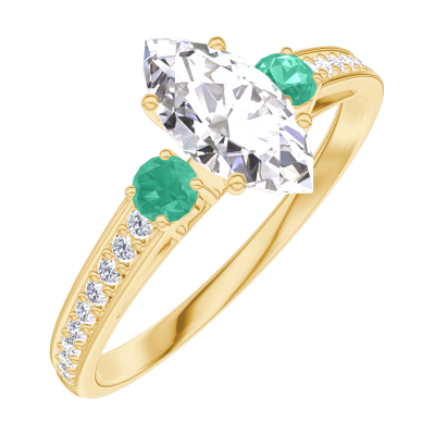« L'ATELIER » Nº162986Ring Yellow gold 9 carats - Diamond white Marquise 0.5 Carats - Ring settings Emerald - Setting Diamond white