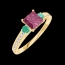 Ring Yellow gold 9 carats - Ruby Princess 0.5 Carats - Ring settings Emerald - Setting Diamond white