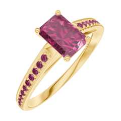 Ring Yellow gold 9 carats - Ruby Baguette 0.5 Carats - Setting Ruby