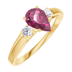 Ring Yellow gold 18 carats - Ruby Pear 0.5 Carats - Ring settings Diamond white