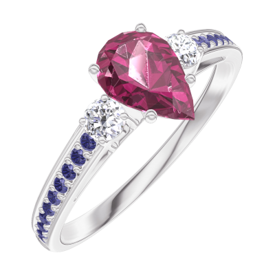 « L'ATELIER » Nº163436Ring White gold 9 carats - Ruby Pear 0.5 Carats - Ring settings Diamond white - Setting Blue Sapphire