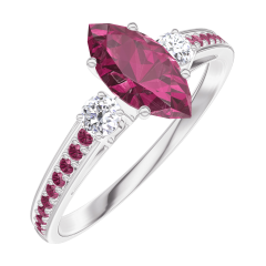 Ring White gold 9 carats - Ruby Marquise 0.5 Carats - Ring settings Diamond white - Setting Ruby