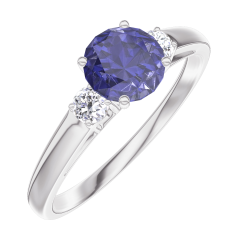 Ring White gold 9 carats - Blue Sapphire round 0.5 Carats - Ring settings Diamond white