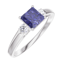 « L'ATELIER » NO. 163724Ring White gold 9 carats - Blue Sapphire Princess 0.5 Carats - Ring settings Diamond white
