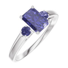 Ring White gold 9 carats - Blue Sapphire Baguette 0.5 Carats - Ring settings Blue Sapphire