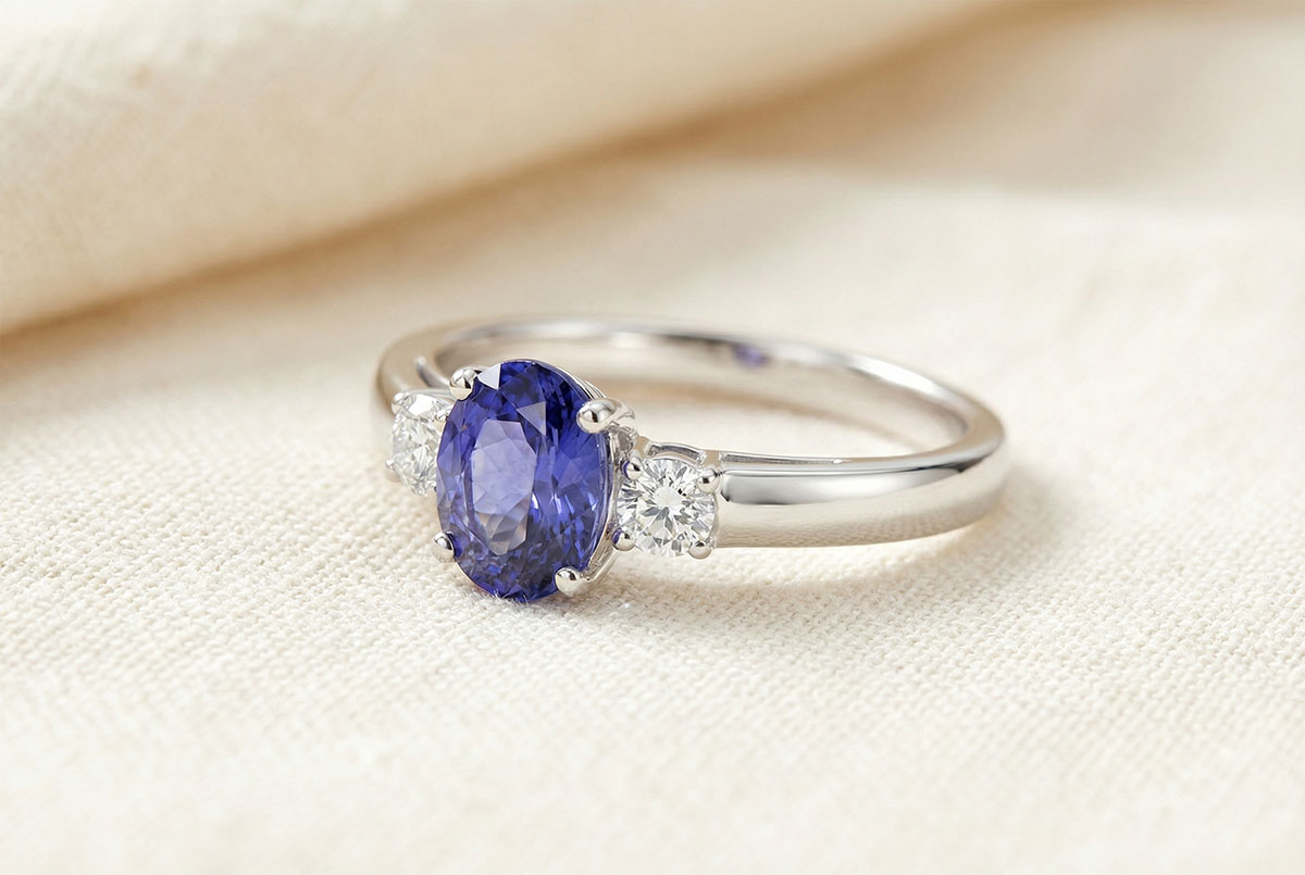 « L'ATELIER » NO. 163924Ring White gold 9 carats - Blue Sapphire Oval 0.5 Carats - Ring settings Diamond white 5