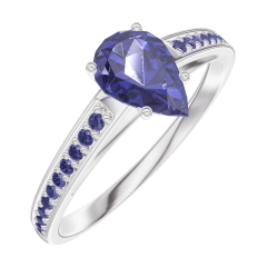 Ring White gold 18 carats - Blue Sapphire Pear 0.5 Carats - Setting Blue Sapphire