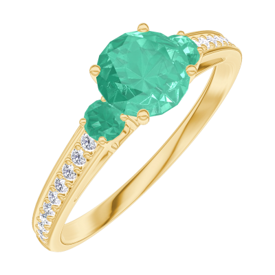 « L'ATELIER » NO. 164286Ring Yellow gold 9 carats - Emerald round 0.5 Carats - Ring settings Emerald - Setting Diamond white 4.9