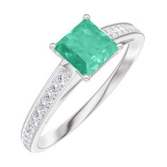 Ring White gold 9 carats - Emerald Princess 0.5 Carats - Setting Diamond white