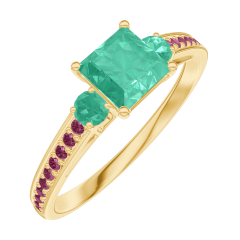 Ring Yellow gold 9 carats - Emerald Princess 0.5 Carats - Ring settings Emerald - Setting Ruby