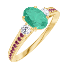Ring Yellow gold 18 carats - Emerald Oval 0.5 Carats - Ring settings Diamond white - Setting Ruby