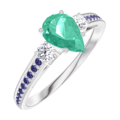 Ring White gold 9 carats - Emerald Pear 0.5 Carats - Ring settings Diamond white - Setting Blue Sapphire