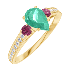 Ring Yellow gold 18 carats - Emerald Pear 0.5 Carats - Ring settings Ruby - Setting Diamond white