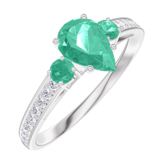 Ring White gold 9 carats - Emerald Pear 0.5 Carats - Ring settings Emerald - Setting Diamond white