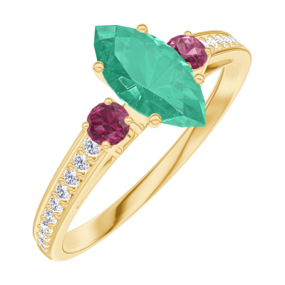 « L'ATELIER » NO. 164746Ring Yellow gold 9 carats - Emerald Marquise 0.5 Carats - Ring settings Ruby - Setting Diamond white