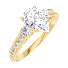 Ring Yellow gold 18 carats - Diamond white Pear 0.7 Carats - Ring settings Diamond white - Setting Diamond white