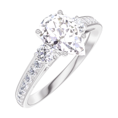 Ring White gold 18 carats - Diamond white Pear 0.7 Carats - Ring settings Diamond white - Setting Diamond white