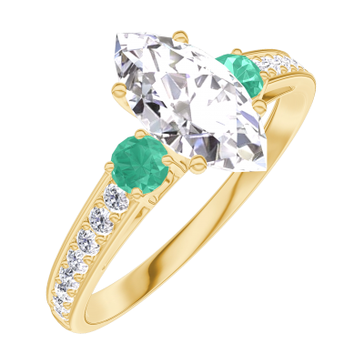 « L'ATELIER » Nº165385Ring Yellow gold 18 carats - Diamond white Marquise 0.7 Carats - Ring settings Emerald - Setting Diamond white