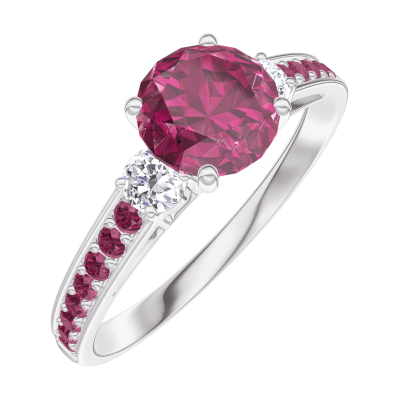 « L'ATELIER » NO. 165431Ring White gold 18 carats - Ruby round 0.7 Carats - Ring settings Diamond white - Setting Ruby 5