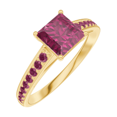 Ring Yellow gold 18 carats - Ruby Princess 0.7 Carats - Setting Ruby