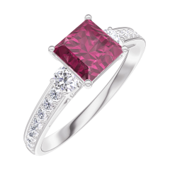 Ring White gold 9 carats - Ruby Princess 0.7 Carats - Ring settings Diamond white - Setting Diamond white